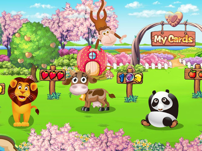 into every game if kids answer all the problem, he will got a card as gift, and he can collect various animal, plant, Fruit, vegetable cards. these cards is very lovely, and can teach baby learn various goods and words.