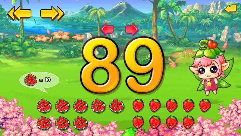 ~ 12 game modes: Counting 0--100, Find number, Count strawberries, Compare numbers, Matching number cards, Add, Subtract, Multiply, Divide, Addition table, Subtraction Table, Multiply Table, All in One.