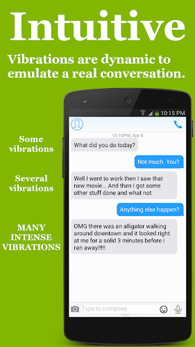 Mumble! is a revolutionary new vibrating notification app for SMS and instant messages. It's the first and only app that allows you to have a sense of the emotion, content, length, and importance of the messages you receive before reading them. This innovative idea is combined with ultra-advanced algorithms that have a sophisticated understanding of human emotion and natural language processing. Mumble! gives you an experience unlike anything else on the planet.