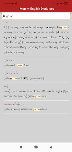 MonDict is an offline dictionary featuring both "Mon to English" and "English to Mon" translations. It provides a range of definitions and examples, and also includes a definition search with highlighted results. This makes it an invaluable resource for Android users seeking comprehensive Mon and English definitions all in one app.We are currently offering version 4.5.0. This is our latest, most optimized version. It is suitable for many different devices. Free download directly apk from the Google Play Store or other versions we're hosting. Moreover, you can download without registration and no login required.