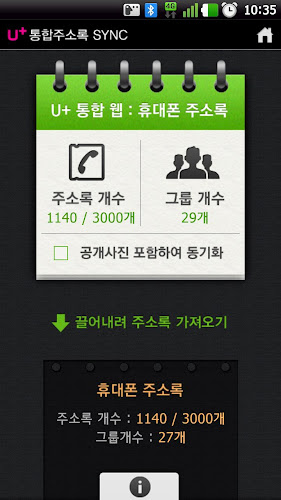 : Lg U + Home> my page> Integrated Address Book> Export - Backup phone book in the smartphone (upload / download) function, you can continue to access the app via u box.