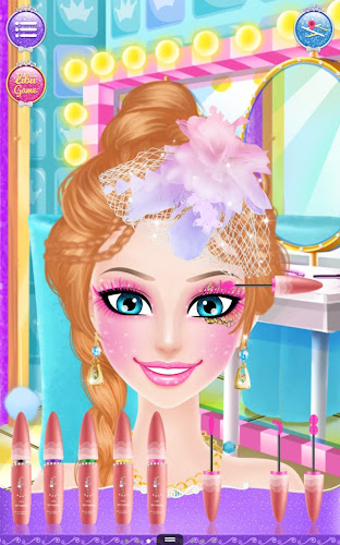 Open Ballet Salon, choose a ballerina you like most to start the game, then you’ll find her appearing on a colorful street. Along the street you’ll see a few rooms, in sequence they are the SPA room, in which the ballerina can have a relaxing spa to make sure her hair and skin are flawless already to dance on the stage. Next, you’ll see Libii Beauty Room, here you can help her choose a hair style, eye color and put the makeup on. After that, you’ll come to the Costume Store and assist her to select an amazing ballet dress(or ballet top and skirt, etc.), gloves, stockings, ballet shoes, and the matched accessories (including necklace, earrings, bracelet and headgear). Then you can also enter her dance classroom to watch her practicing. At last, you will see the Libii Theatre and Ballet Park where the ballerina will perform, she will show up confidently and dance on the beautiful stage, let's see how amazing she is!