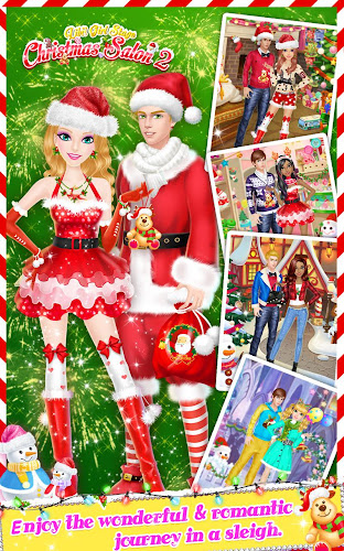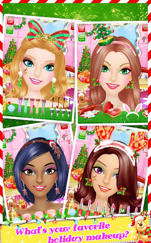 Open the game and choose a girl to start with. The first thing that catches your sight is a joyous house, click it and then you can freely place the twinkling lights, pretty bowknots, fun candy canes and many more ornaments to make the house more festive for the holidays! And you can also decorate the tree in the same way. Do you know where it is? Aha~ Just slide the street to the left, you will find it next to the sleigh. Hmm… Pretty good! Then, you can give the girl a beauty makeup, and stunning holiday costumes. Besides, please click the "Friend's Home" to choose a handsome boy, and it'll be necessary to dress him up by tapping the hanger. After that, bring them to the gift shop or warm stove, where you can take photos to record the sweet moments. Finally, when you return to the street, click the icon on the top right to challenge the daily task, after you complete all the tasks, Santa Claus will secretly send gifts to you! Can't wait anymore? Come and explore the dreamy fun!