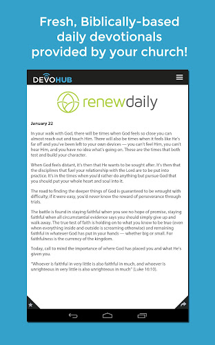 Activate DevoHub at your church for free daily devotionals right on your device!