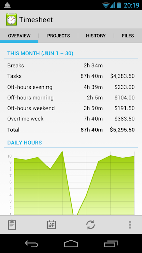 • Graphical chart with daily/weekly hours.