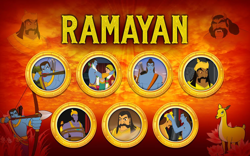 This animated stories to recounts the classic good vs. evil story where Rama, exiled to the forest with his wife Sita and brother Lakshman, overcome adversity and the evil king Ravana, eventually returning to the throne after fourteen years.With original illustration, music and sound effects, it's an updated story on a classic tale!