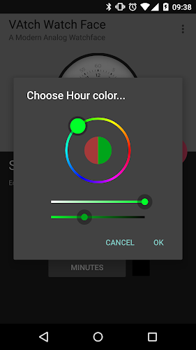 Through the configuration application you can customize the appearance of VAtch, changing the hour and minutes hands colors. You have an unlimited colors choice!