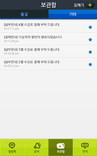 푸시 메시지 알림 기능을 통해 재원생의 출결현황 및 수강료 납부방법, 결제내역 등 메가스터디학원에서 보내 드리는 소식을 실시간으로 확인할 수 있습니다.