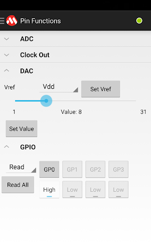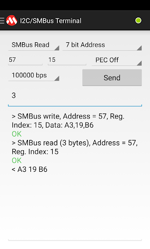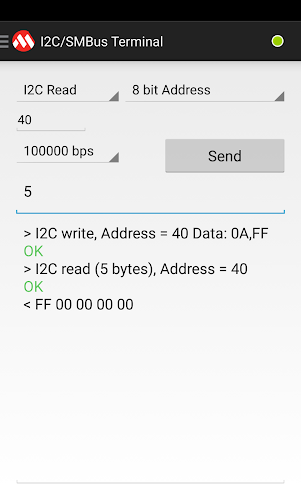 Turn your device into an I2C/SMBus terminal. The app allows you to interface with an MCP2221 and easily communicate with I2C/SMBus slaves.You can also control the MCP2221's pin functions and make use of the on board ADC, Clock Out, DAC and GPIO.