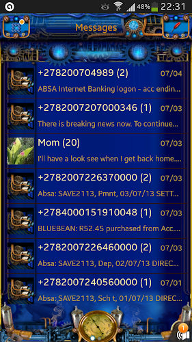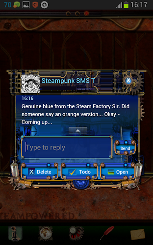 The GO SMS Pro gets the Blue's with this Steampunk Theme by mindseed design