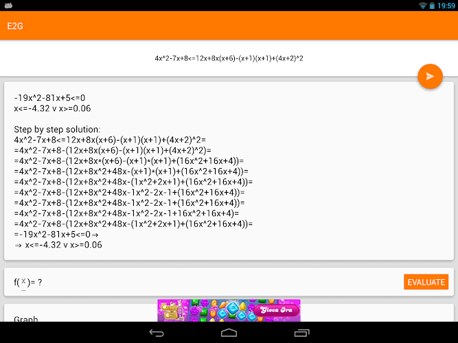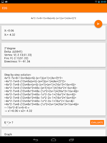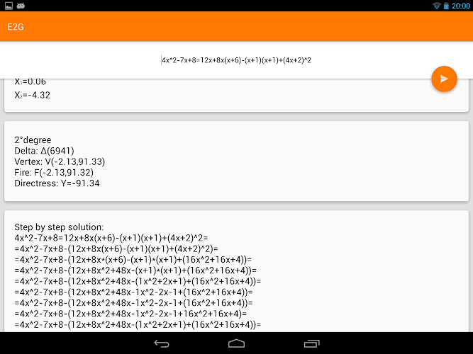 Equation Solver allow you to study and solve equations and inequalities of first and second degree.-Step by step solution.