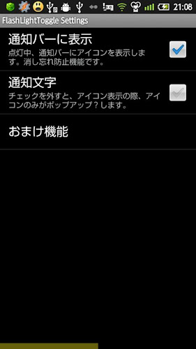 FlashLightToggle for SH is an app to put the lights on for Sharp devices(such as AQUOS PHONE).Settings