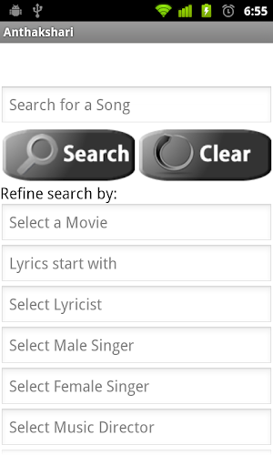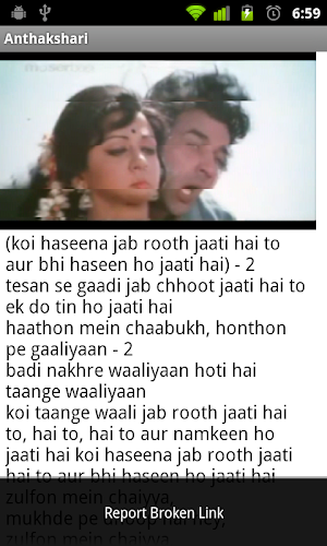 An app where you can look up the lyrics of hindi movie songs using search.