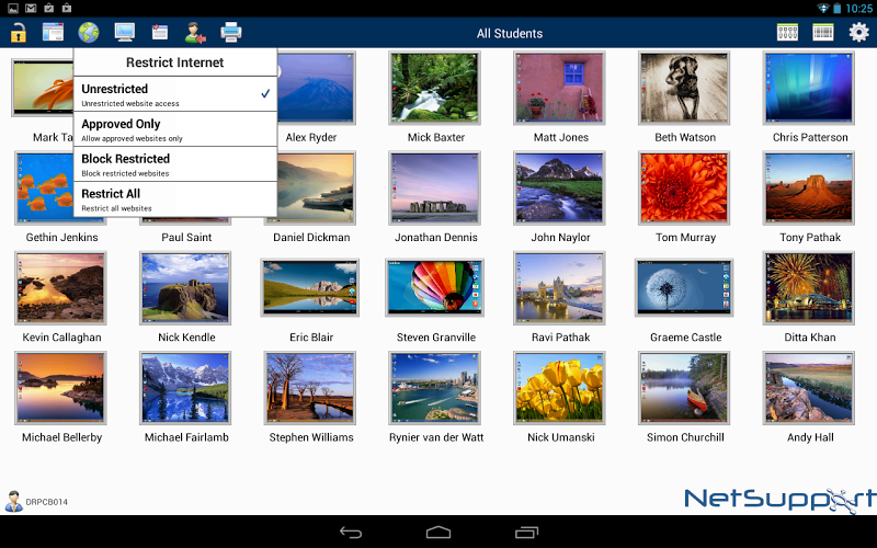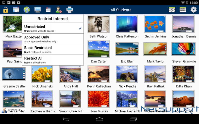Block the internet to retain student focus when instructing or monitor internet use. Use ‘approved’ and ‘restricted’ lists, as defined at your main NetSupport Tutor console, to control access to websites.