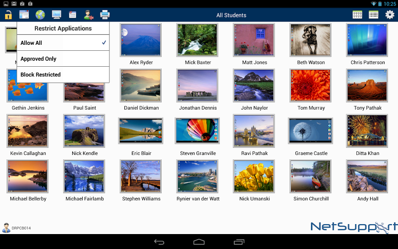 Monitor application use across the classroom. Use ‘approved’ and ‘restricted’ lists, as defined at your main NetSupport Tutor console, to control application use.