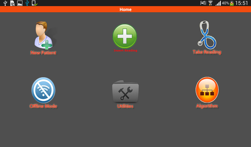 The hardware consists of a multi-parameter diagnostic kit that can be operated by an Android tablet or phone. The Android tablet or phone connects to a ‘Hub’ either through the USB port or the Bluetooth interface. Each sensor then connects with the ‘Hub’ via a mini B USB. Signals are digitally processed to reduce noise and enhance quality required for diagnostics.