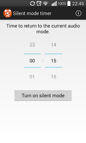 The application is designed to temporarily turn silent mode, the timer returning previous sound scheme (vibration mode or full volume).We are currently offering version 1.03. This is our latest, most optimized version. It is suitable for many different devices. Free download directly apk from the Google Play Store or other versions we're hosting. Moreover, you can download without registration and no login required.