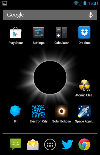 Android App Analysis and Review: Solar Eclipse Live Wallpaper, Developed by Nooleus. Listed in Personalization Category. Current Version Is 1.3, Updated On 28/09/2013 . According to users reviews on Google Play: Solar Eclipse Live Wallpaper. Achieved Over 741 Installs. Solar Eclipse Live Wallpaper Currently Has 32 Reviews, Average Rating 4.5 Stars