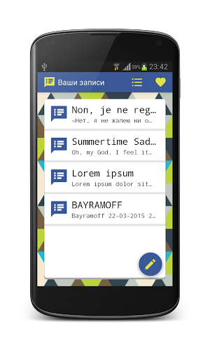 Android App Analysis and Review: Diary - Your Personal Records, Developed by BAYRAMOFF. Listed in Lifestyle Category. Current Version Is 2.3, Updated On 23/03/2015 . According to users reviews on Google Play: Diary - Your Personal Records. Achieved Over 2 thousand Installs. Diary - Your Personal Records Currently Has 84 Reviews, Average Rating 4.2 Stars