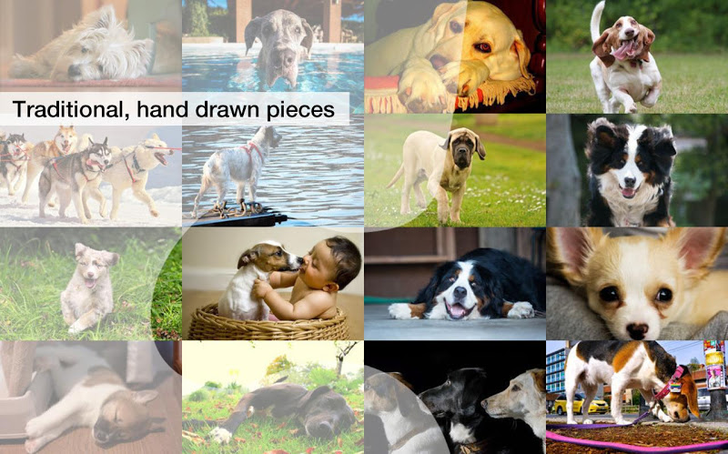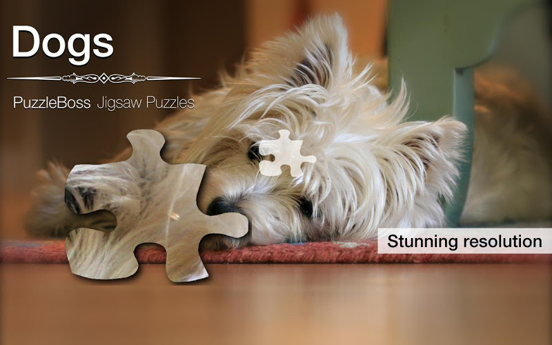 Note: Dog Jigsaw Puzzles is designed for tablets and may not be as nice on small phones. This jigsaw puzzle pack contains 16 jigsaws.PuzzleBoss Dog Jigsaw Puzzles provide a real jigsaw experience unlike any other. When you are tired of the mess and space real jigsaw puzzles need, check out our beautiful tablet jigsaw puzzles and you won't be disappointed! Our jigsaws are optimized for adults, use your tablet in landscape mode with lots of space for sorting pieces and finishing sections, and come with a range of puzzle settings to help you have the most authentic, pleasant experience.
