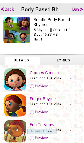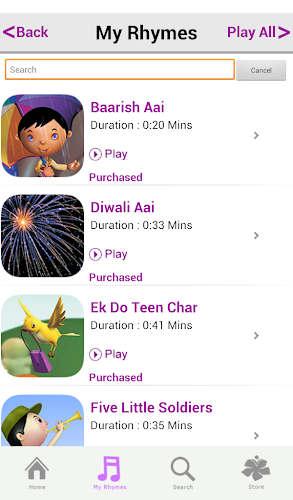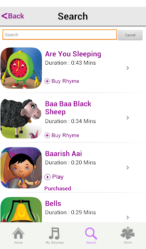 ▪ Download the app today and play any one of our 5 free rhymes. If you want more, simply use one of our many beautifully crafted rhyme packages to suit your tastes. Go to our fantastic ‘Rhymes Store’ within the app, select, purchase, and download any or all of our rhyme bundles. All rhyme packages are available through in- app purchases. We offer rhyme bundles with several themes such as: