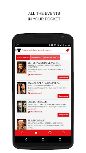 Application to buy tickets in Lliure theater.