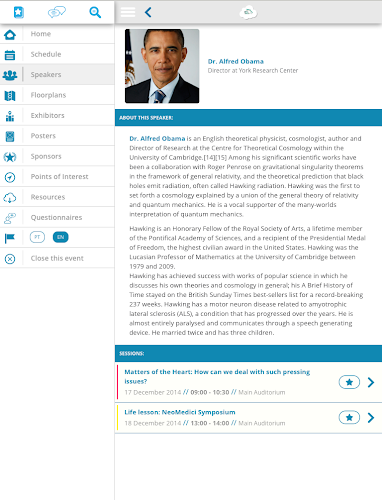 Cloud Guide App offers interactive event guides for conferences and trade shows. Just ask your event organizer for the event code, insert it on the app and download have the event information about speakers, programme, exhibitors, you name it, right...