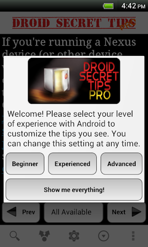 There are over 250 Android tips in this how-to app, with many more on the way. The database of Android tips is frequently updated, and the updated tips are downloaded automatically. You can search for something specific, or flip through the tips by experience level.