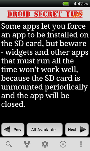 Push your Android device even further with Droid Secret Tips PRO. It contains all of the Android tips and secrets from the free version, and adds these features:-No Ads