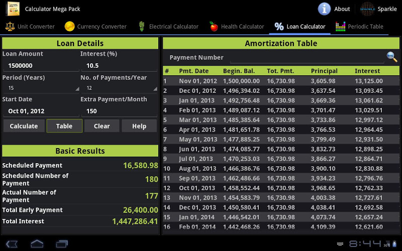 Loan Calculator provides the best way to calculate EMI and other important details related to a loan. Attractive and Detailed Amortization Table. All the payments details can be tracked separately from the Amortization Table.