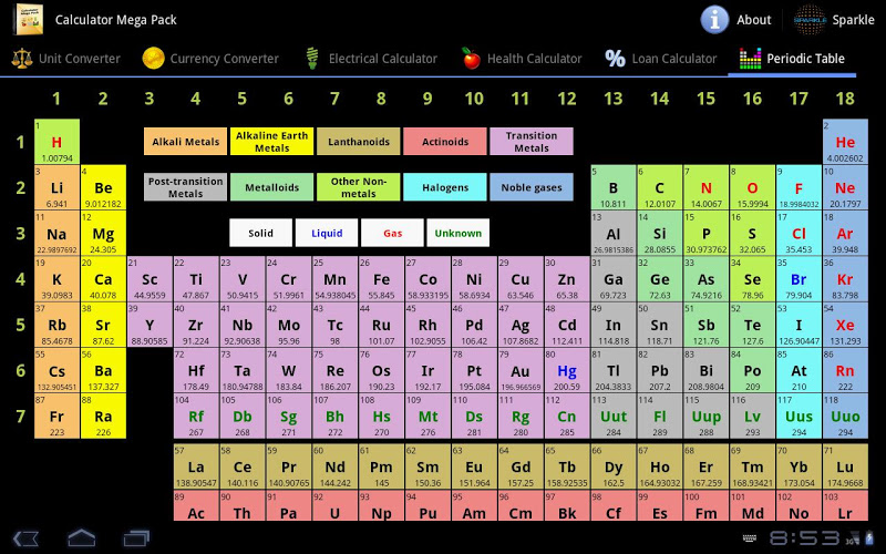 Unit & Currency Converter, Electrical, Loan & Health Calc. with Periodic Table.