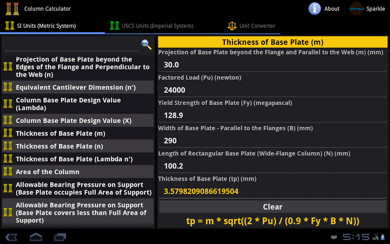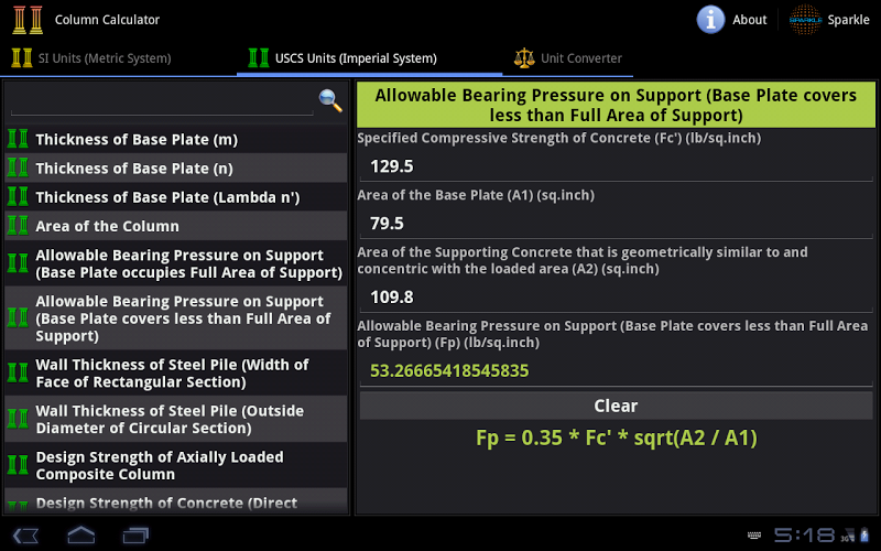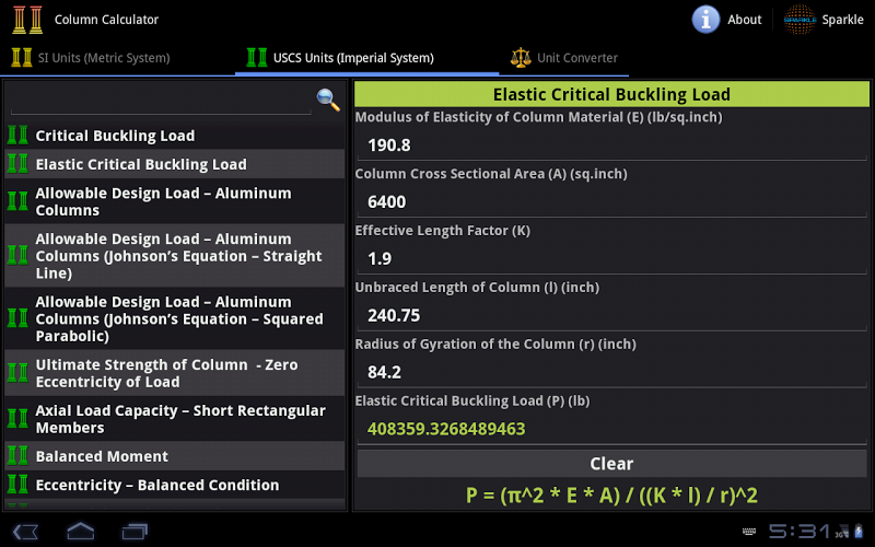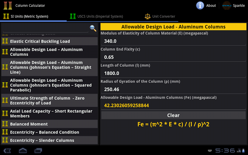 Column Calculator contains 67 Calculators and Converters, that can quickly and easily calculate and convert different Columns and Civil Engineering parameters. Automatic & Accurate Calculations and Conversions with every Unit and Value Changes. Available in Imperial and Metric Units. Most Comprehensive Column Calculator.*** Available in Metric and Imperial Units ***