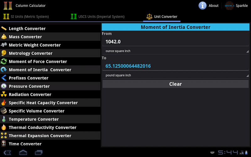 • Complete coverage of calculators and converters in Column and Civil Engineering Parameters.