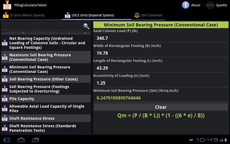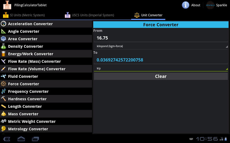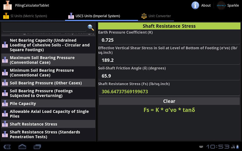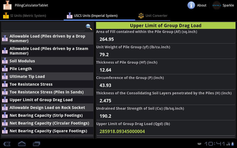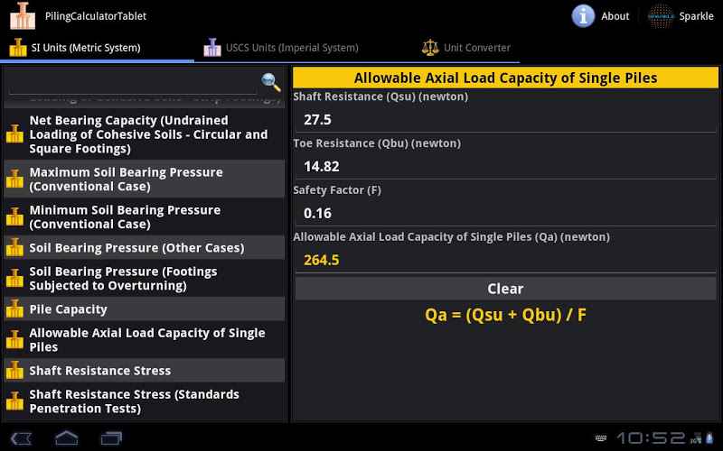 • Complete coverage of calculators and converters in Piling and Civil Engineering Parameters.