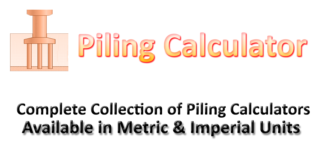 Piling Calculator contains 54 Calculators and Converters, that can quickly and easily calculate and convert different Piling and Civil Engineering parameters. Automatic & Accurate Calculations and Conversions with every Unit and Value Changes. Available in Imperial and Metric Units. Most Comprehensive Piling Calculator.*** Available in Metric and Imperial Units ***