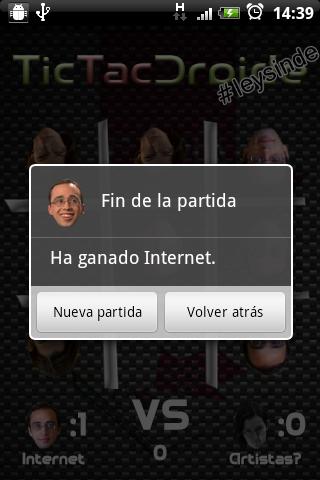 Note: This is a theme for the game TicTacDroide (available on the market) allusive subject to discussion of the Sinde law in red.enfrenta in the noughts and crosses david bravo, computer law attorney and intellectual property, and AngelsGonzalez-Sinde, Minister of 'culture?' of Spain.