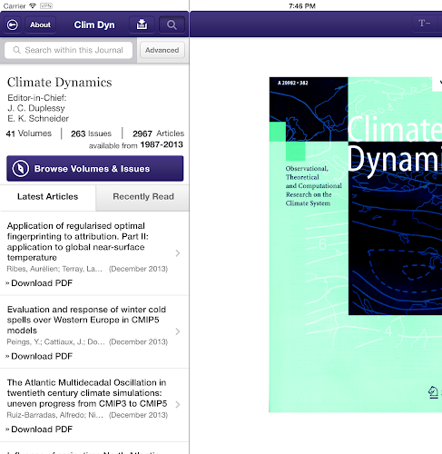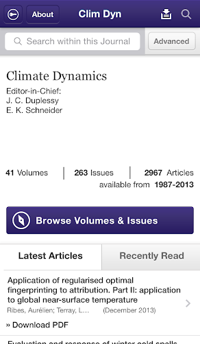 Tap into the most recent developments in the field of observational, theoretical and computational research on the climate system with the Climate Dynamics app. Climate Dynamics is an international peer-reviewed journal published by Springer Science+Business Media that continuously publishes articles on all aspects of the dynamics of the global climate system.This free app provides valuable features including: