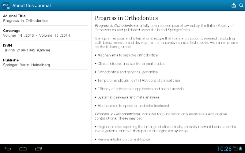 Tap into the most recent orthodontic research with the Progress in Orthodontics app. Progress in Orthodontics is a peer-reviewed open access journal published by Springer Science+Business Media. The Journal publishes orthodontic research, including...