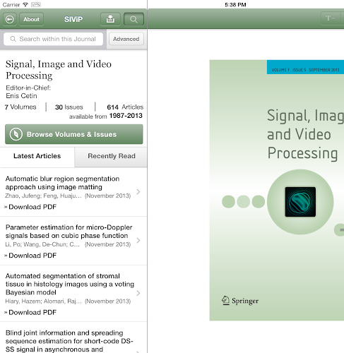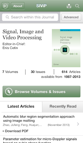 Tap into the most recent developments in all aspects of theory and practice of Signal, Image and Video Processing with the Signal, Image and Video Processing app. Signal, Image and Video Processing is a peer-reviewed journal published by Springer Science+Business Media. The Journal continuously publishes original research work, review and tutorial papers and accounts of practical developments presenting practical solutions for the current Signal, Image and Video Processing problems in Engineering and Science.This free app provides valuable features including: