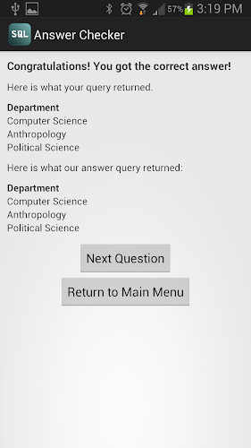 This app is not being updated, so check out SQL Practice Pro instead: https://play.google.com/store/apps/details?id=randomappsinc.com.sqlpracticeplusWe are currently offering version 1.0. This is our latest, most optimized version. It is suitable for many different devices. Free download directly apk from the Google Play Store or other versions we're hosting. Moreover, you can download without registration and no login required.