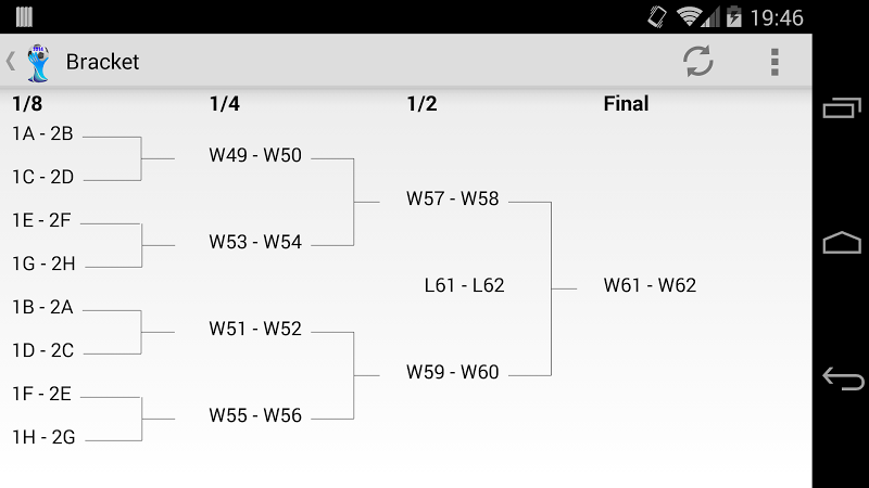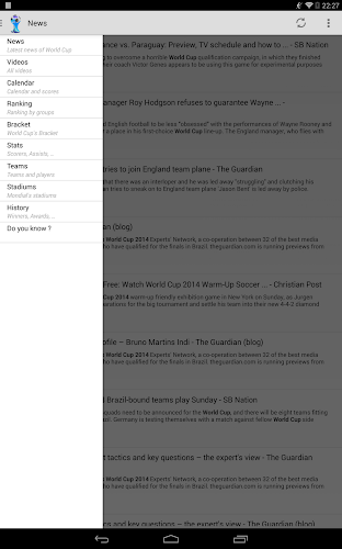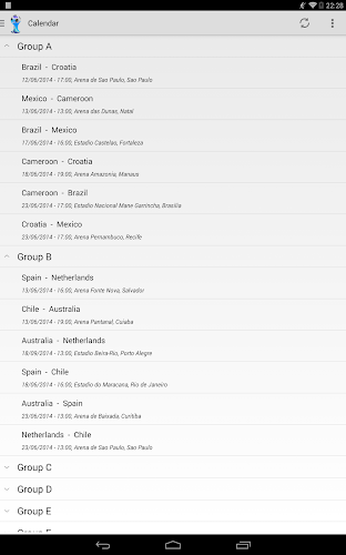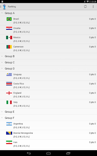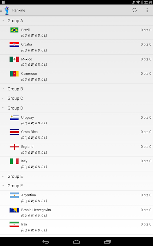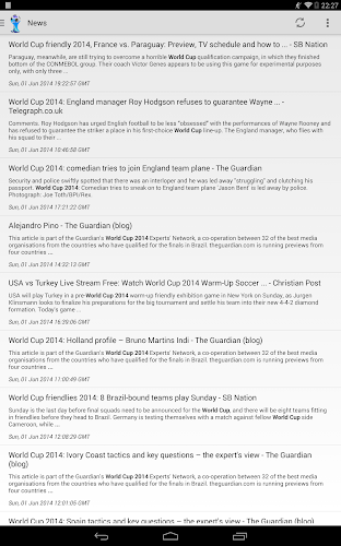 World Cup 2014 is a free application essential to follow World Cup 2014 in Brazil on your smartphone.News, Videos, Calendar, Ranking, Stats and Bracket are available for you in an application updated daily in real time allowing you to not miss any information on the Brazilian World Cup.