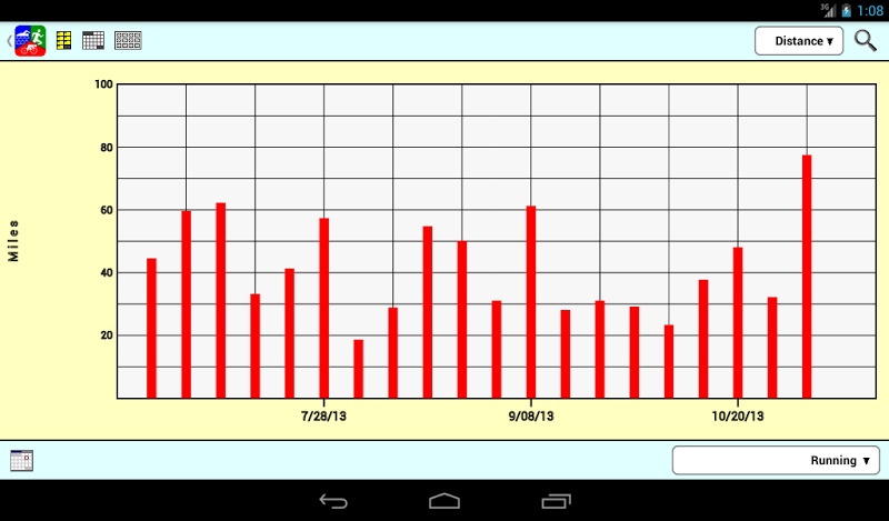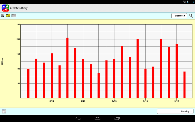 o Display time, distance, pace, and #workouts totals in list or graphical form, by week, month, or year, for all sports or any one sport