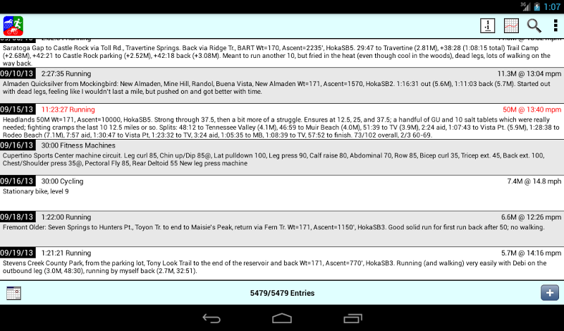 o Memorize and enter frequent workouts using "autofill." Just enter today's time and perhaps a comment and you're done.