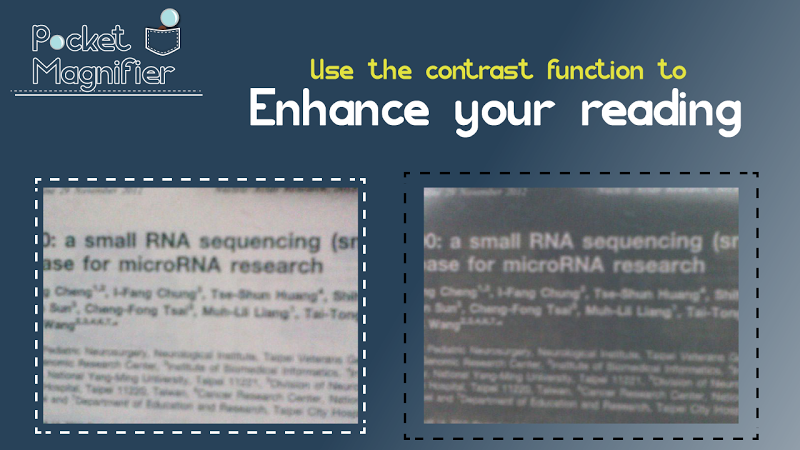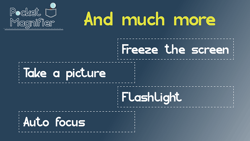 The Pocket Magnifier is an app that helps the user to see things that are too small.It fits: