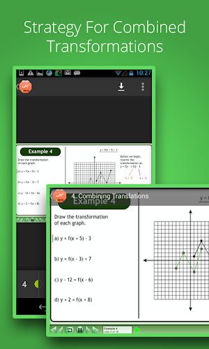 The workbook for Combined Transformations can be found in the introduction. Students should make two printouts of this workbook. Label the first printout "Lecture Notes", and label the second printout "Practice".Videos: The videos present a fully animated solution for each question in the workbook.