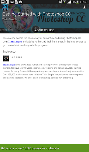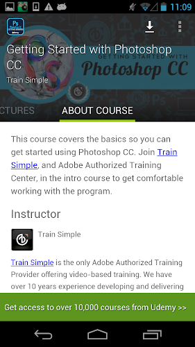 Android App Analysis and Review: Basic Photoshop - Udemy Course, Developed by Udemy. Listed in Education Category. Current Version Is 1.1, Updated On 21/11/2017 . According to users reviews on Google Play: Basic Photoshop - Udemy Course. Achieved Over 10 thousand Installs. Basic Photoshop - Udemy Course Currently Has 181 Reviews, Average Rating 4.0 Stars