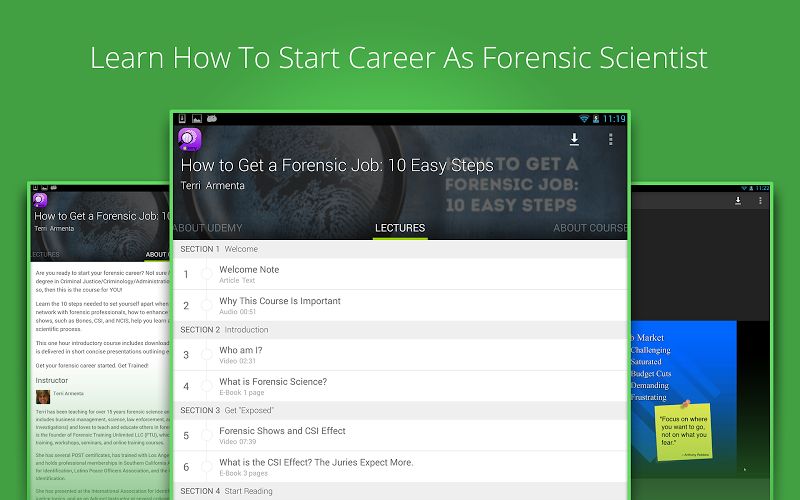 Install the "Forensic Science Jobs Course" app today and join over 4 million students who are already learning on Udemy.