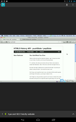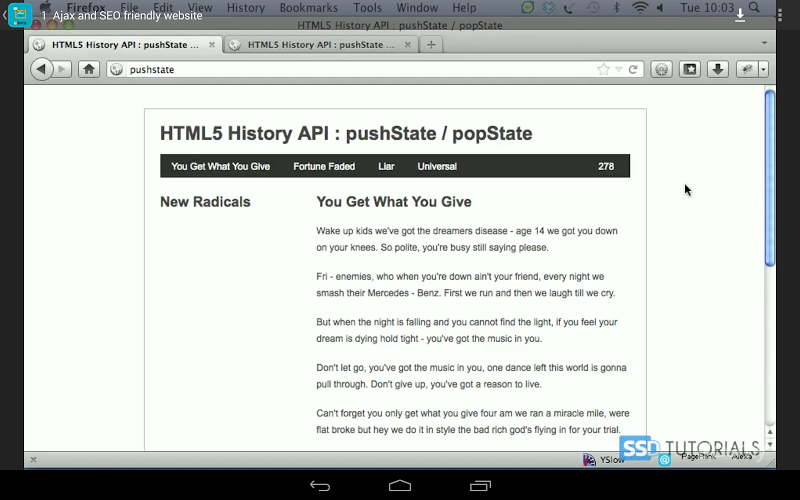 Learn how to create an SEO friendly Ajax built web applications with fade in / out content effect and changing urls without reloading the page - all this using HTML5 History API and it's pushState and popState methods.With this course you will...