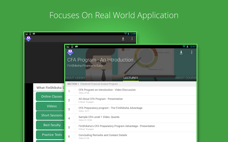 • Watch courses in offline: Save courses for offline viewing so you can watch them while you're on a plane or subway!