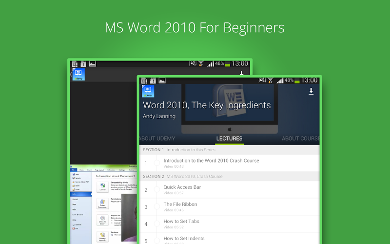 Install the "Learn Word 2010 - Udemy Course" app now and join over 4 million students who are already learning on Udemy.